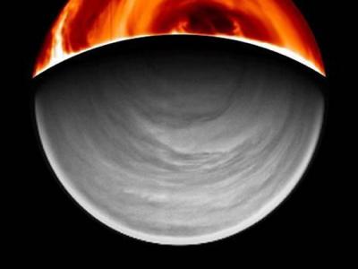 金星快车号探测器使用VIRTIS仪器呈现的金星大气循环情况,顶部是夜间红外线观测情...