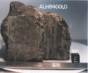 火星陨石ALH84001 对于著名的火星陨石ALH84001的磁化分析表明,这块陨石从火星到...