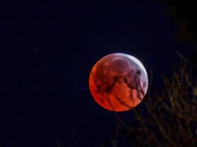 月球变成红色,非常鲜艳。 月全食的过程不长 月球变成“血月”,非常壮观。...