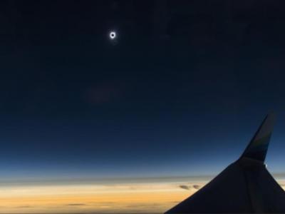 有人选择于空中欣赏此次日全食。包机上的乘客表现兴...