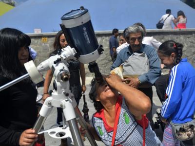 科学家以气球收集日全食数据。民众静候日全食的来临...