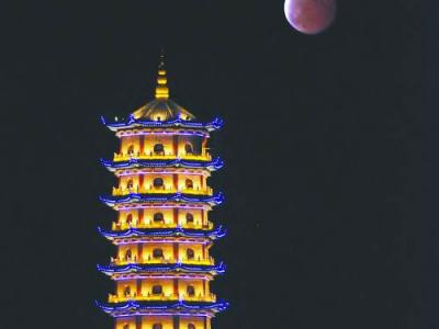 10月8日在江西省抚州市正觉寺拍摄的月全食(黄国富 摄 新华社) (神秘的地球报...