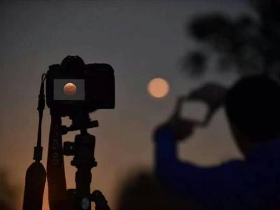 南京上空呈现罕见血的红月亮 南京市民带备摄影工具拍下月食的一刻 山东亦可...