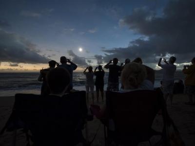 罕见“血色月亮”月全食在美国上演