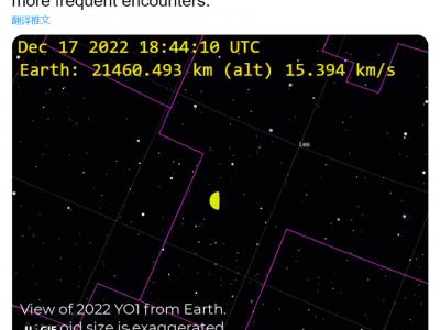 接近地球的汽车大小的小行星2022 YO1飞得比通信卫星的高度还低(神秘的地球uux.cn)...