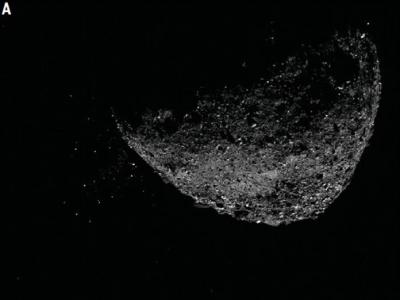 NASA OSIRIS-REx航天器摄像机捕获从近地小行星Bennu表面喷射出物质的近摄照(Credit...