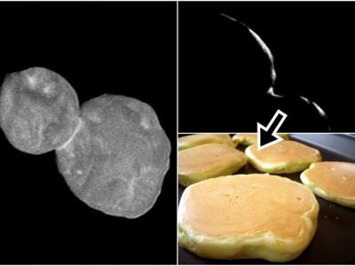 NASA指新照(右上)显示小行星不像雪人(左图),而是似热香饼...