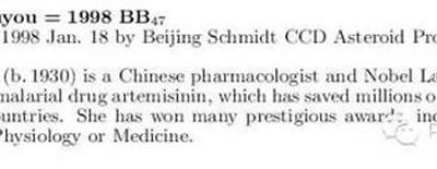 第31230号小行星永久命名为“屠呦呦星” (神秘的地球报道)据中国国家天文微信...
