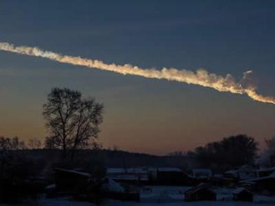 2013年发生在俄罗斯车里雅宾斯克的陨星撞击事件现场拍摄照片。可以看到陨星在地球...
