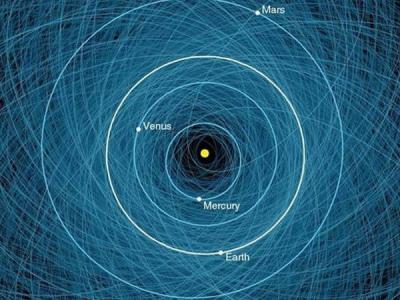 从图中可以看出,危险级近地小行星轨道已经将火星、地球、金星覆盖,它们直径较大...