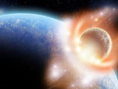 艺术表现恒星北落师门环绕盘中两个行星相撞的过程。图片来源:uux.cn托马斯·穆勒(...