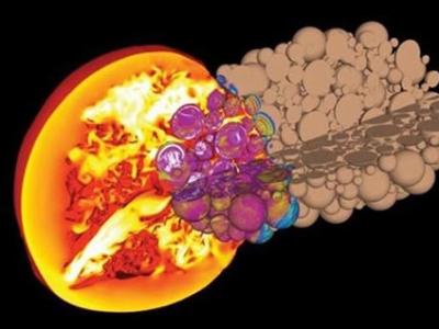 这位艺术家的概念展示了一个假设的事件,称为超千新星。一颗大质量恒星在超新星爆炸...