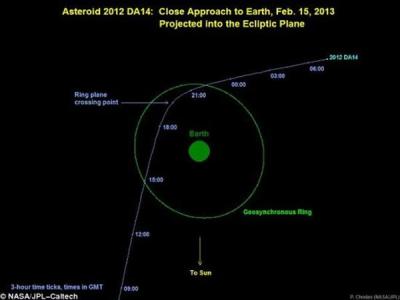 直径50米小行星“2012 DA14”15日将与地球擦肩而过 2012 DA14小行星比同步轨道...