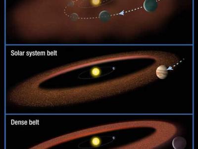 有迹象表明小行星带可能孕育着生命。上图为类似木星大小的行星穿过小行星带的情景...