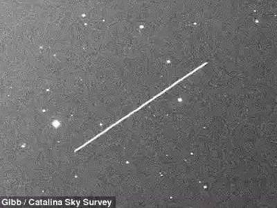 这就是小行星2012 KT42的飞行轨迹图像,这颗直径约7米的小行星本周二在距离地球1...
