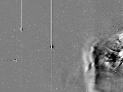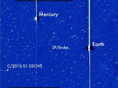 这是美国宇航局日地关系观测台(STEREO)视野图像中的ISON彗星,时间是2013年11月...
