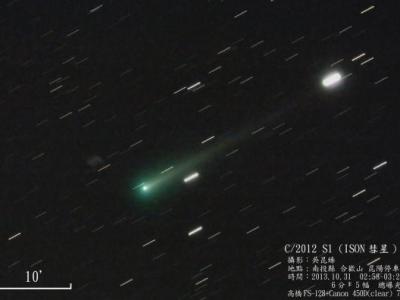 台北天文馆吴昆臻先生于2013年10月31日拍摄之艾桑彗星。(图/台北市立天文馆) ...