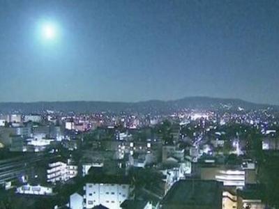奈良的监测镜头拍得的火球,光如月亮。有大坂网民用望远镜拍下...