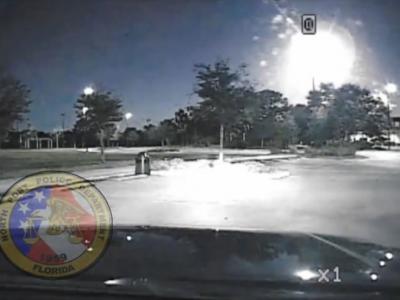 警车行车纪录仪拍摄到流星解体爆破的一刻。 有居民起初以为闪光和巨响是变压站...