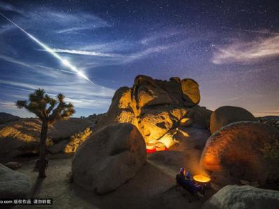 美国摄影师为友人拍合影摄到壮观流星 (神秘的地球)据Sipa Photo:美国加州,...