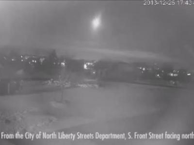 美国爱荷华州巨大火流星划过天际