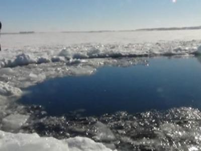 当地时间2013年2月15日,俄罗斯车里雅宾斯克地区,陨石坠入冰冻的切巴尔库尔湖中...