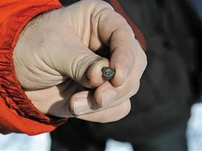 17日,俄罗斯,科学家在切巴尔库利湖附近发现15日坠落的陨石碎片。俄罗斯科学院陨...