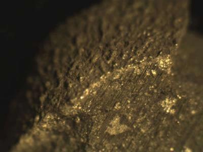 火星陨石碎块裂缝中含有少量的黑玻璃