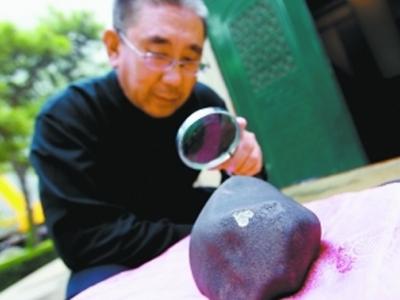 昨天,北京天文馆陨石专家张宝林正在对神秘陨石进行研究。 近日,一块来自外太空...