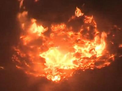 一位俄罗斯博客中张贴的手机视频截图,显示陨星坠落后的大火 陨星坠落拉脱维亚...
