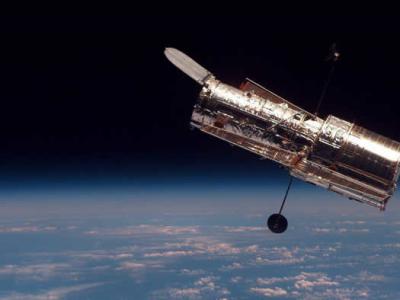 哈勃太空望远镜与“发现号”航天飞机一起发射进入低地球轨道3...