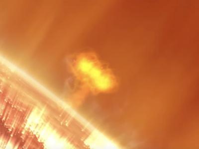 日冕物质抛射与太阳色球层的混合图像。图片来源:uux.cn/SOHO—ESA & NASA(神...