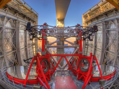 LBT的两个镜面聚集的光线和一个11.8米的望远镜同样多,这使得LBT成为目前世界上最...