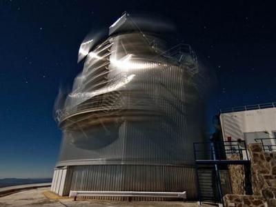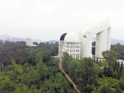 郭守敬望远镜(大天区面积多目标光纤光谱天文望远镜,简称LAMOST)的穹顶打开,中...
