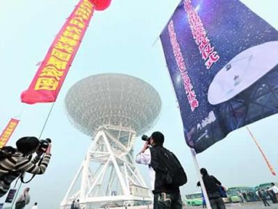 亚洲最大的全方位可转动射电望远镜在上海天文台正式落成 10月28日,亚洲最大的全...