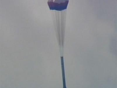 飞机拍下战神1-X火箭降落伞故障溅落水中