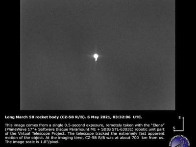 中国长征五号B遥二火箭最新照片曝光 预计美东时间8日坠落地球表面(神秘的地球uux....