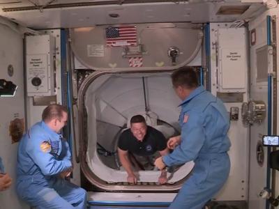 本肯(中)率先进入太空站。(神秘的地球uux.cn报道)据东网:...