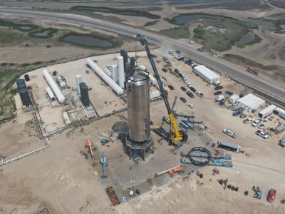 SpaceX星际飞船SN4:50米高庞然大物上测试台竖起 2023年载人绕...
