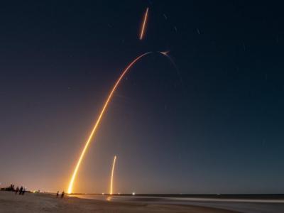 SpaceX运送星链卫星的猎鹰9号火箭的发射