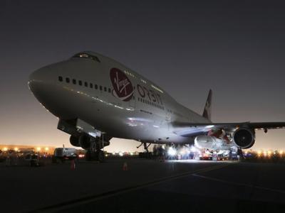 波音747搭载“发射者一号”。“发射者一号”很巨大。该架波音...
