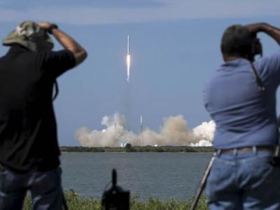 美国猎鹰9号运载火箭第一级在发射后顺利