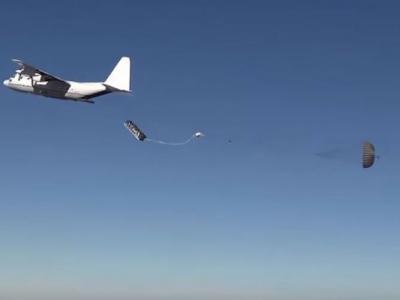 实验在沙漠进行,但真正执务会是降落大海。 4个降落伞都成功打开。 火箭引...