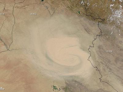 伊拉克和叙利亚边境上出现了大型沙尘暴,直到9月3日,沙尘暴仍然在绵延之中,影响...