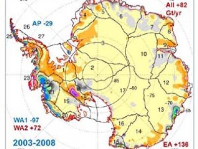 1992年的卫星数据显示,到2001年间冰盖的增加来那个为1120亿吨,2003年至2008年间...