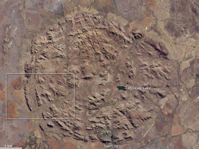 美国航空航天局(NASA)卫星图像显示, 位于南非北部的比林斯堡自然公园的火山岩几...