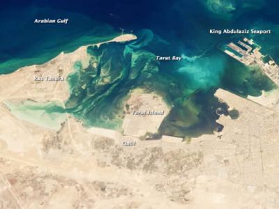 卫星照片展示沙特阿拉伯塔鲁特海湾的景象
