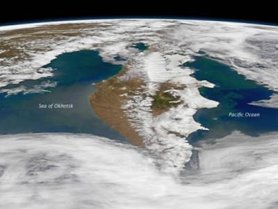 卫星照片展示俄罗斯堪察加半岛的浮游植物