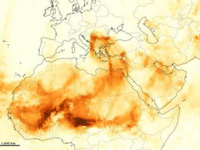 卫星测绘地图展示非洲和欧洲南部上空的悬