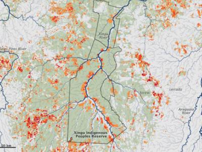 卫星测绘地图展示南美洲亚马逊热带雨林中